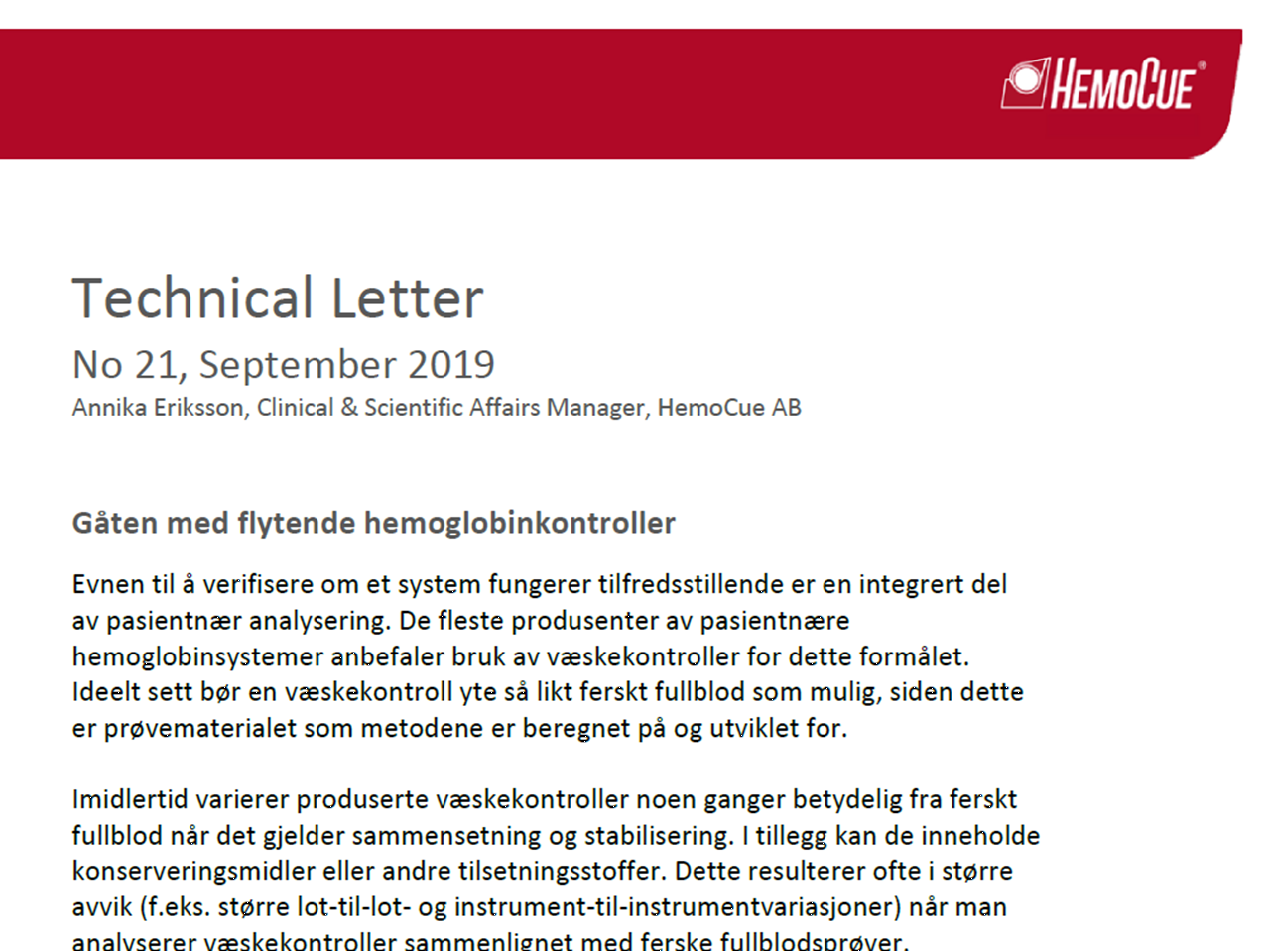 Produsenten HemoCue har beskrevet hva matrikseffekt er i et «Technical Letter» – Gåten om hemoglobinkontroller.