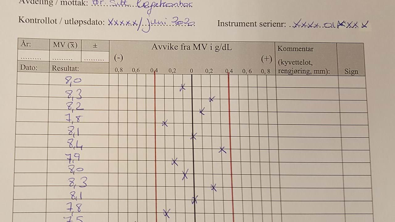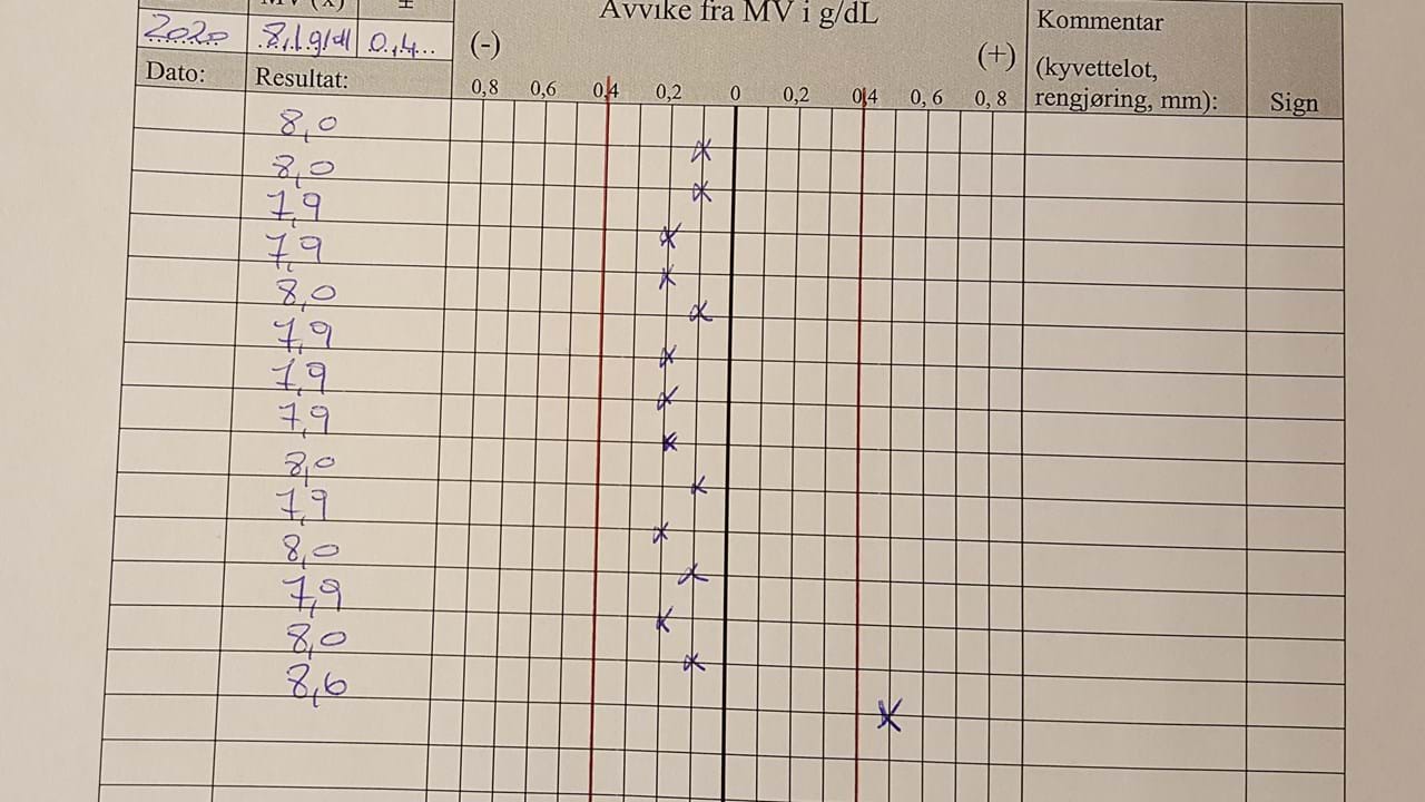 Obs! Bruker du et hemoglobin-instrument, kontroller at du benytter riktig kontrollmateriale fra Eurotrol: